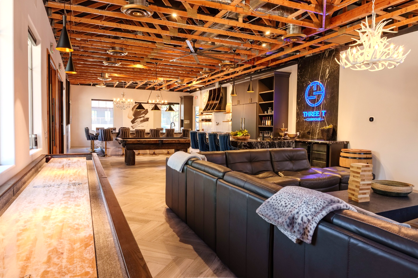 Holding your next event will be easy when your guests enter the beautiful event center. Treating your guests to a fun time is easy at the Three T Clubhouse. We offer a gorgeous Shuffleboard table, Janga in the couch lounge pit area, and and a custom Pool Table all waiting to help break the ice.